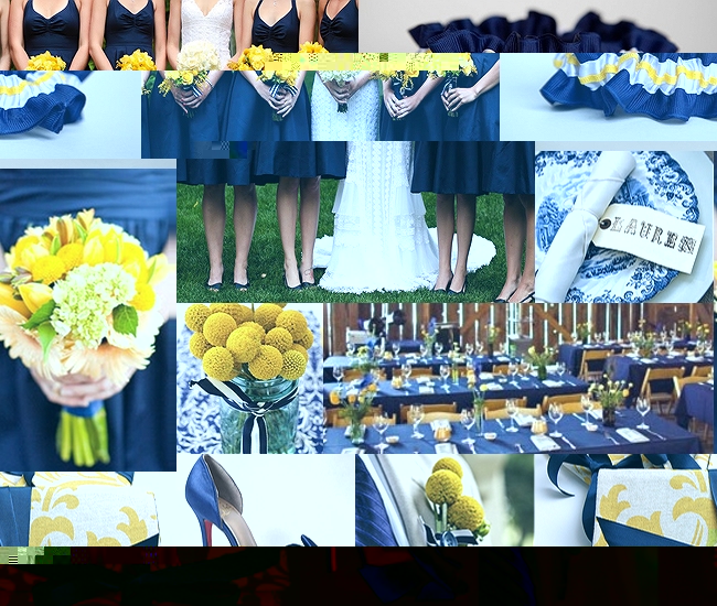 Como casamento tem que ser surpresa para os convidados, aqui vão só ideias para a tal amiga querida, que escolheu um combo de cores que eu acho DIVINO: navy blue e amarelo!